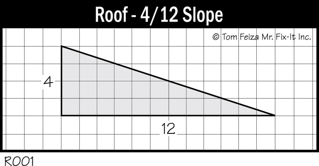 SLOPE – Refers to the angle of the roof. A 4/12 slope refers to a roof that drops 4 feet (vertical) in a 12 foot run (horizontal). The 4/12 can be measured in feet or inches. A 12/12 roof is at a 45-degree angle.