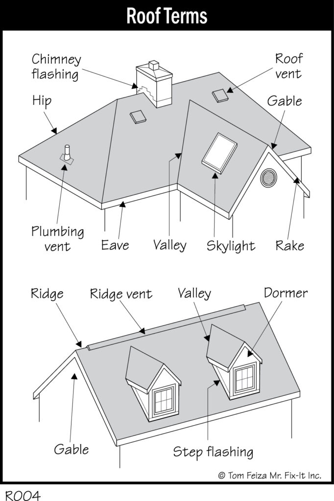 Knowing a few basic terms will help you communicate with roofing contractors and establish fair specifications for your new roof. Review the illustrations for details on the terms.