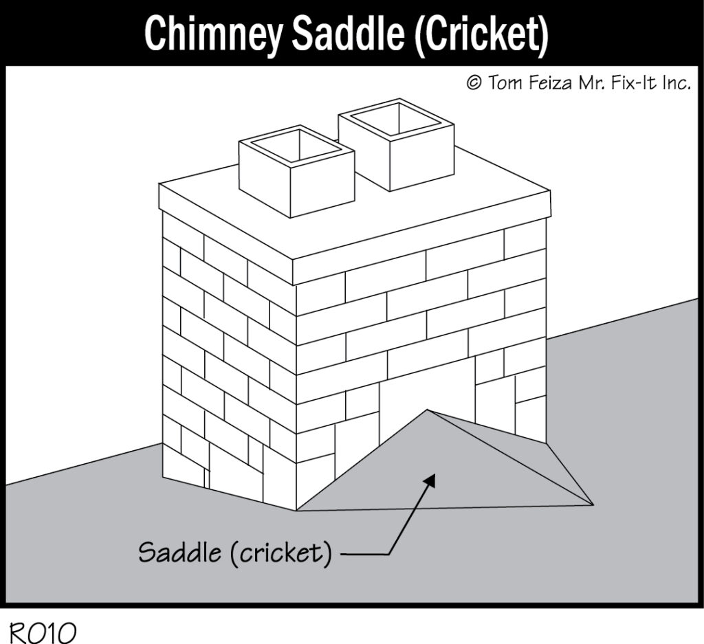 Wide chimneys present special problems if water must flow around the chimney. The rule of thumb is when a chimney is more than 3 feet wide it should have a cricket (saddle) to divert water.