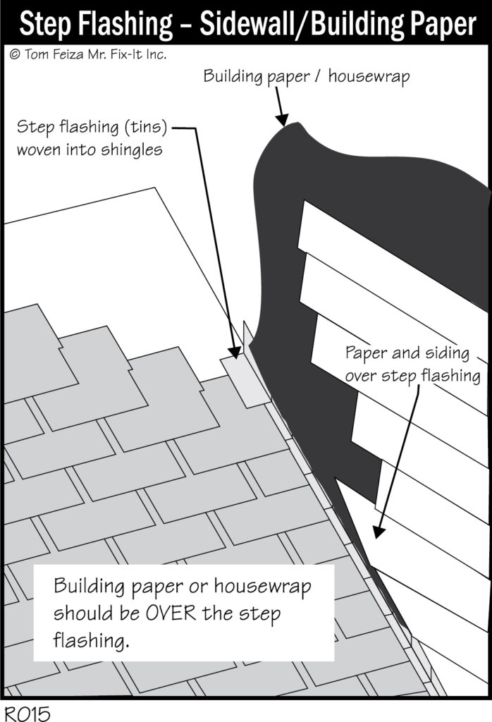 Always require a metal step and cap flashing, and don’t accept anything less. Watch out for contractors who quote a sealant or mastic flashing—these will not work.